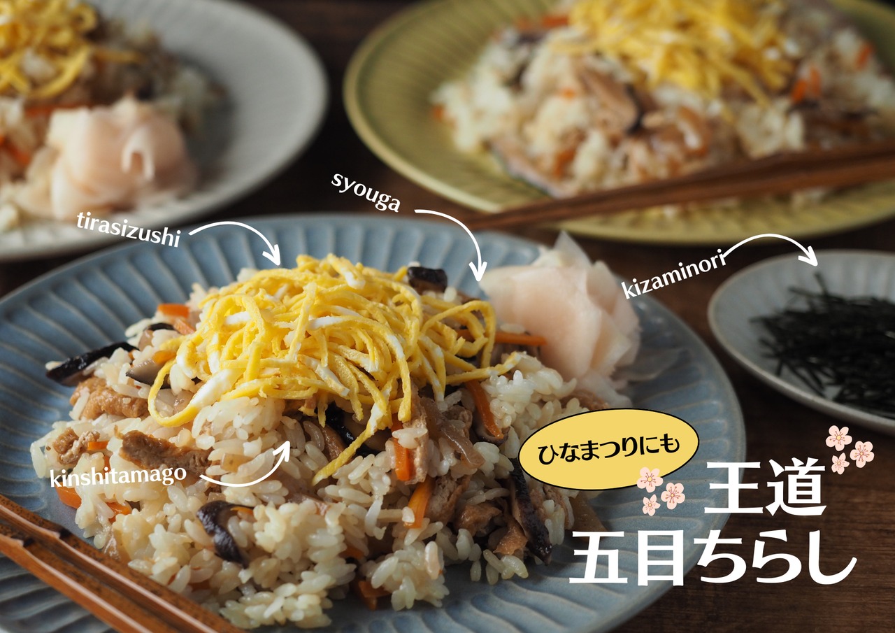 ひな祭りや敬老の日、お誕生日等のお祝いごと、祭りごとにぴったりの五目ちらしのレシピです。